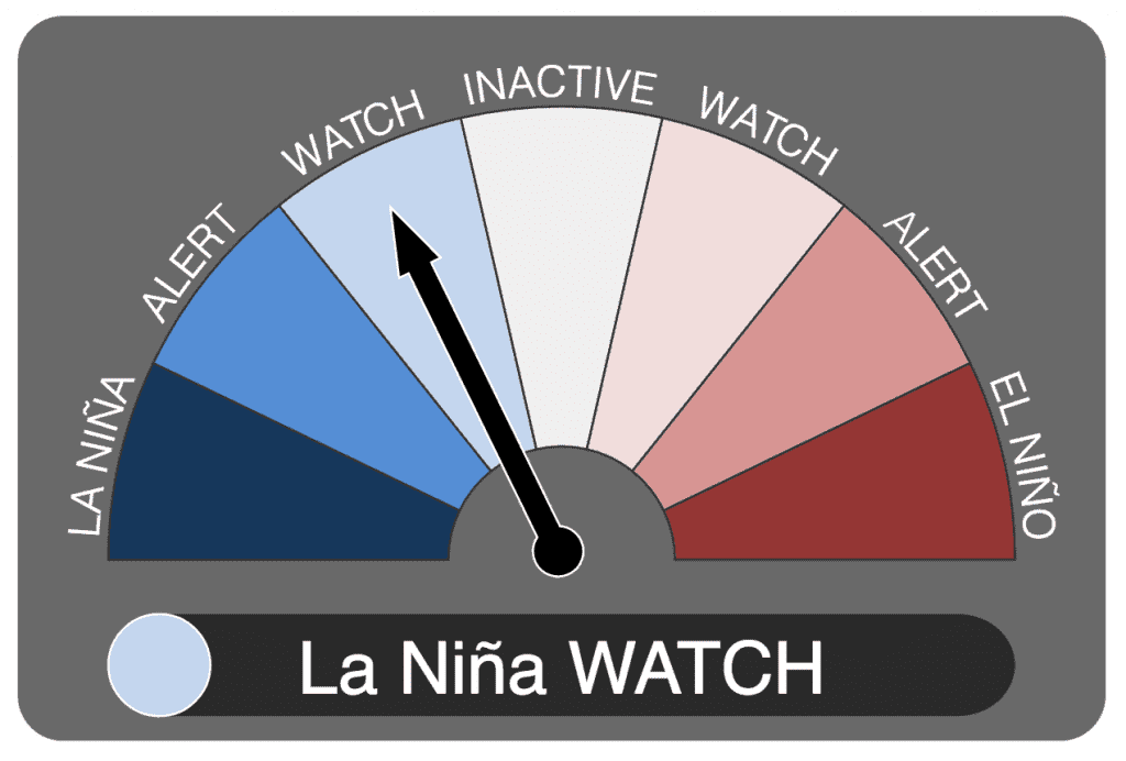 The El Niño–Southern Oscillation (ENSO) shows La Niña conditions are very likely to establish across the Pacific over the coming three months,